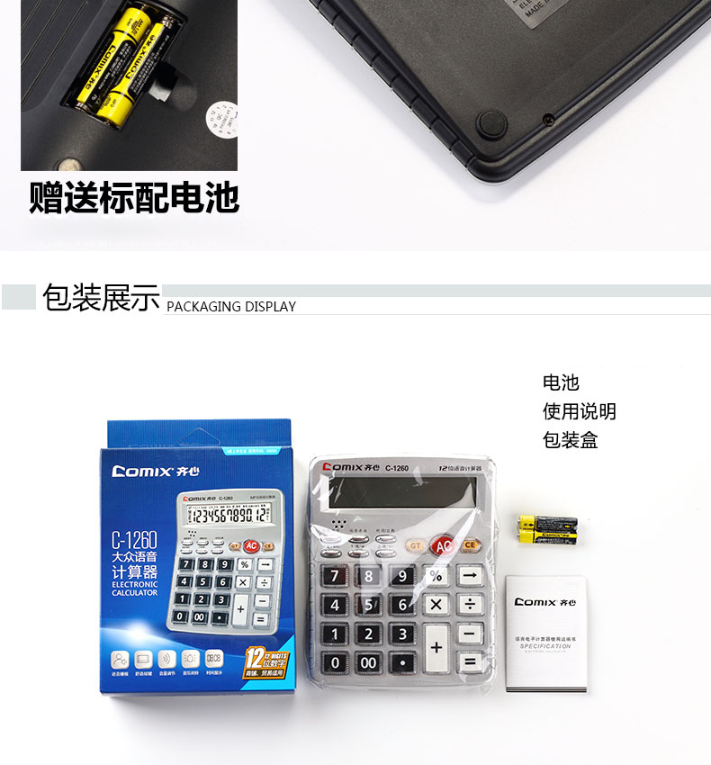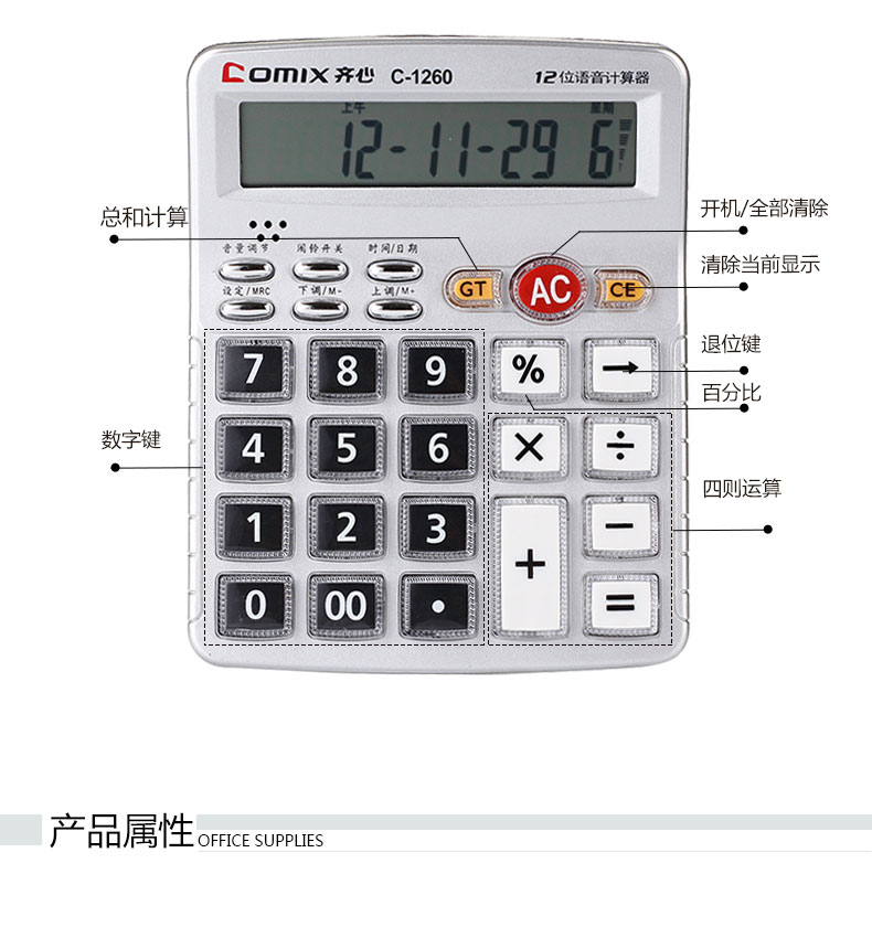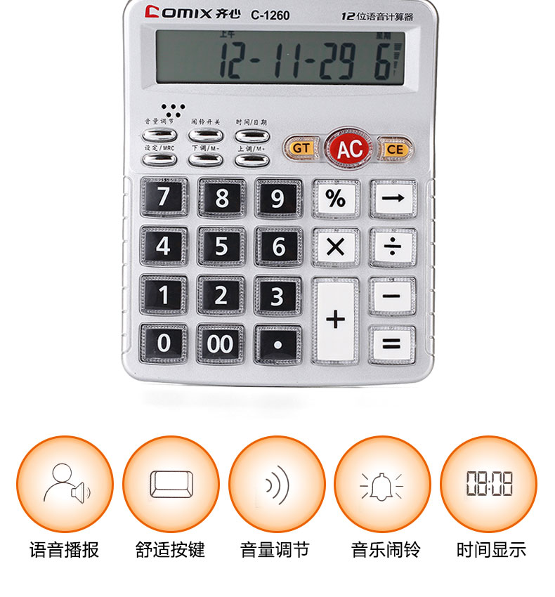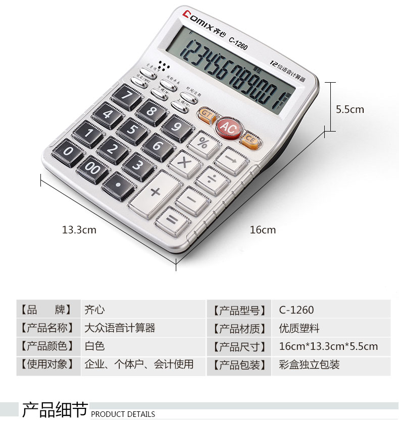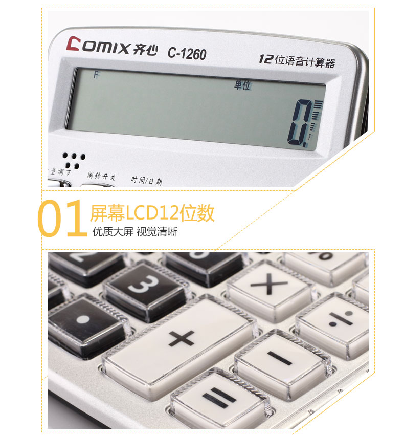 商品名称:齐心(Comix)12位中台经典办公语音计算器/计算机 办公文具 C-1260