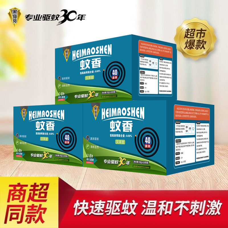 商品名称:黑猫神艾草盘式蚊香 40盘/盒 单位:盒