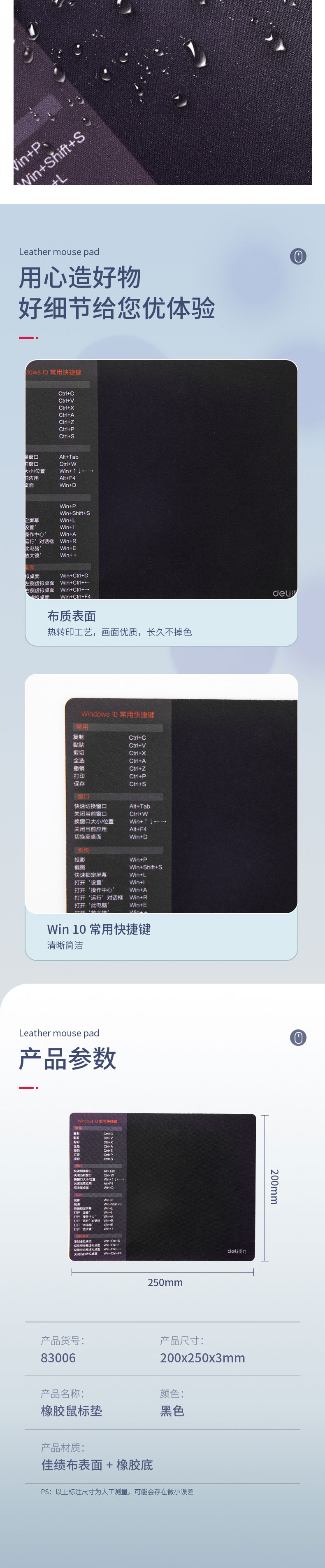 商品名称:得力83006鼠标垫 黑色 单位:块