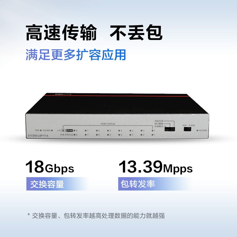 商品名称:华为S1730S-L8P1T-A交换机 POE交换机网线交换器 9口千兆 POE供电 单位:台