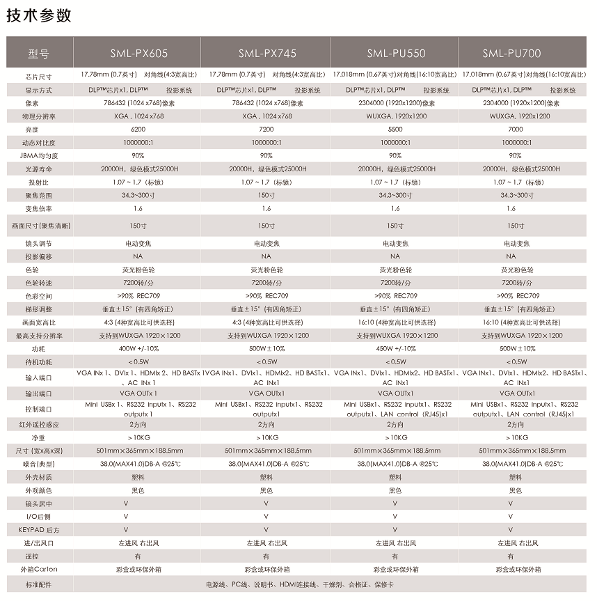 商品名称:视美乐SML-PX745投影仪 7200流明/1024*768像素 单位:台