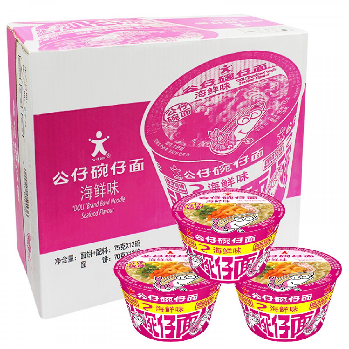 商品名称:公仔碗面 海鲜味 75g/碗 12碗/箱 单位:箱