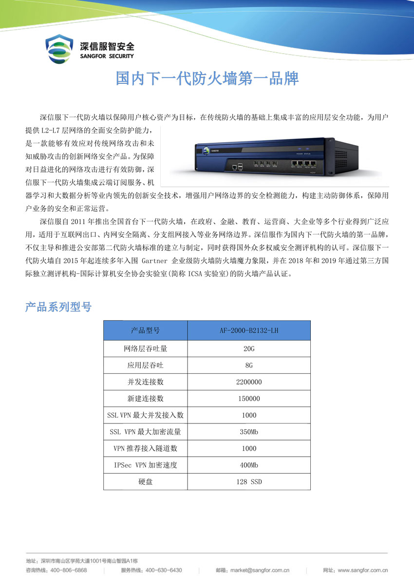 深信服AF-2000-B2132-LH防火墙 单位:台