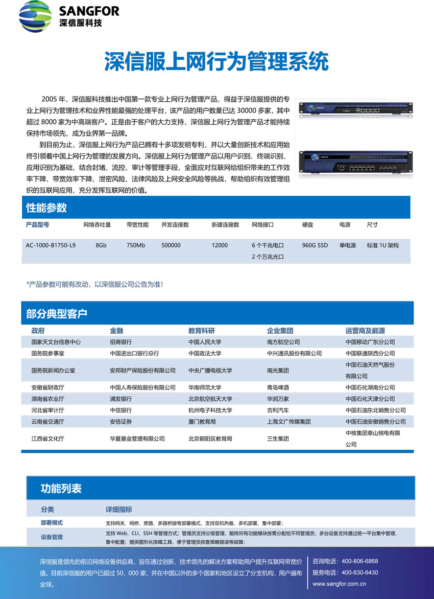 商品名称:深信服AC-1000-B1750-L9上网行为管理系统 单位:台