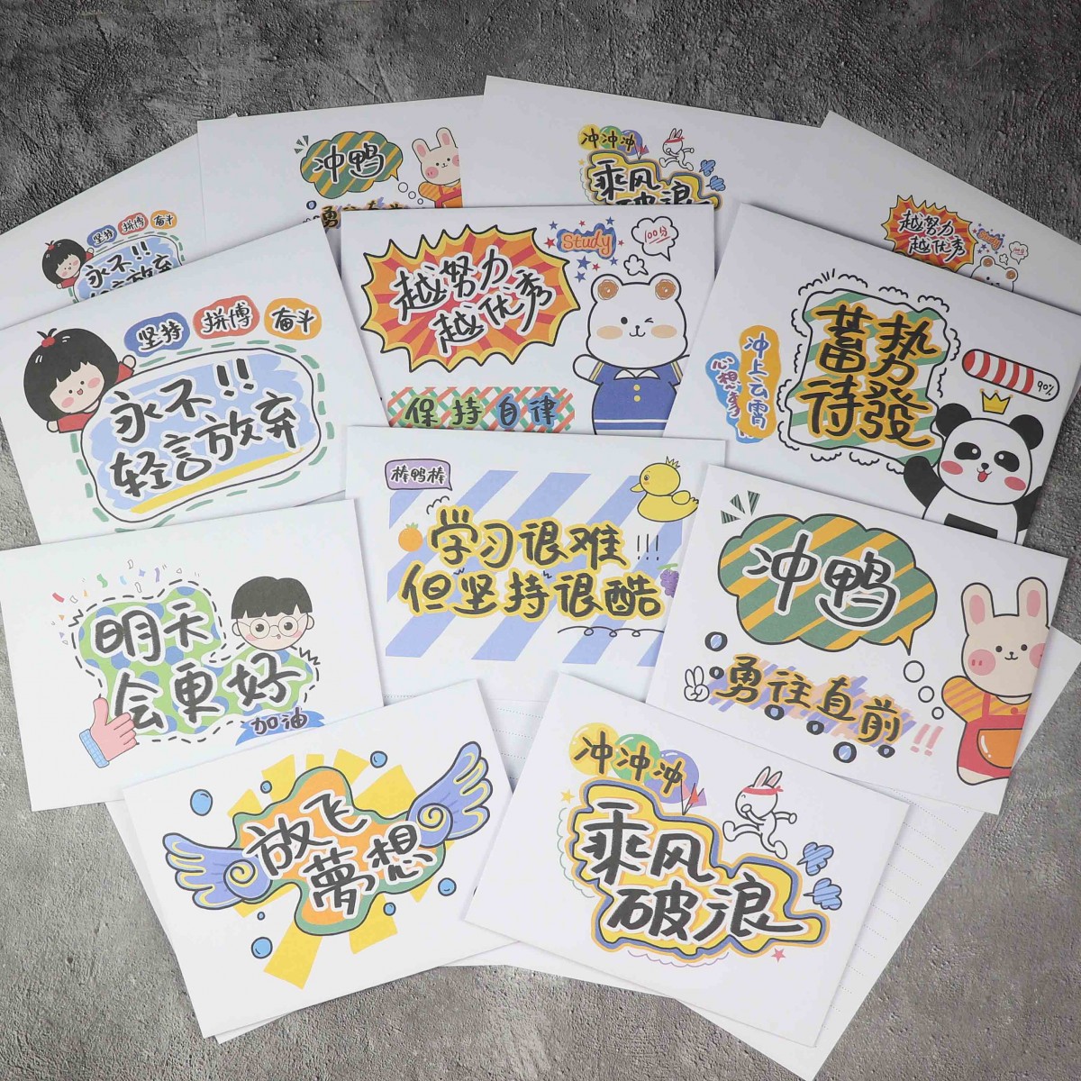 信纸信封套装 8款 10张信纸10个信封混搭 白激励语系列