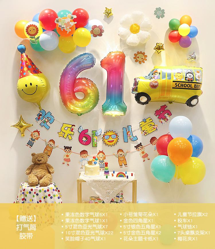 商品名称:六一儿童节气球装饰套装 套餐6 单位:套