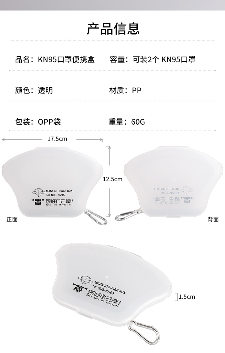 商品名称:KN95口罩便携盒 透明 可装2个KN95口罩 单位:个