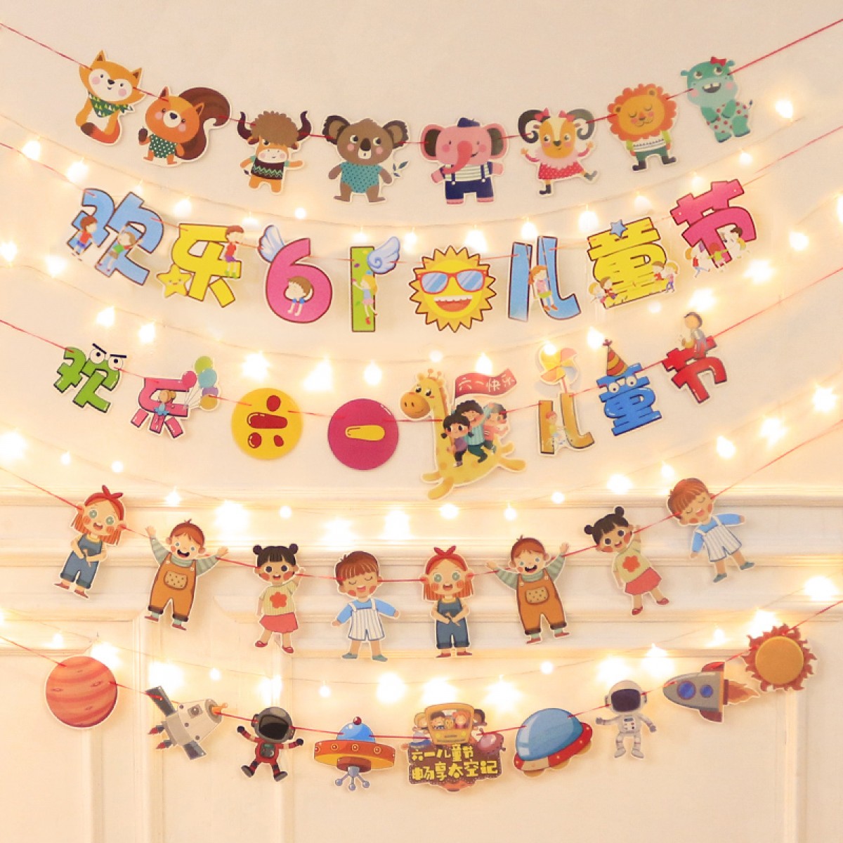 六一儿童节装饰场景布置 改新-61拉旗组合5条+4条灯串