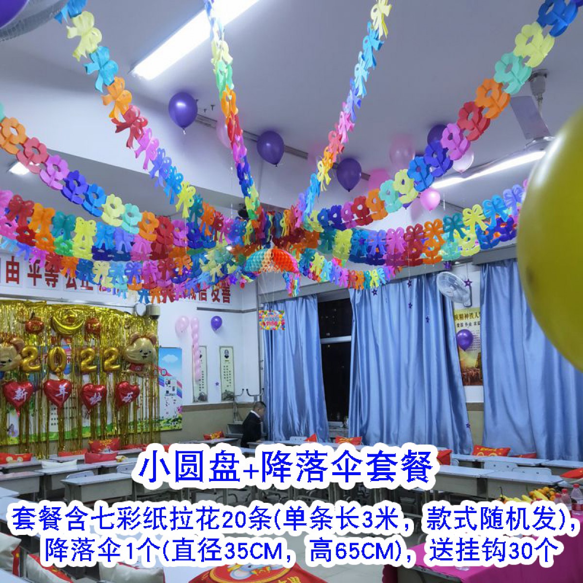商品名称:六一儿童节纸拉花装饰场景布置 小圆盘+降落伞套装 单位:组
