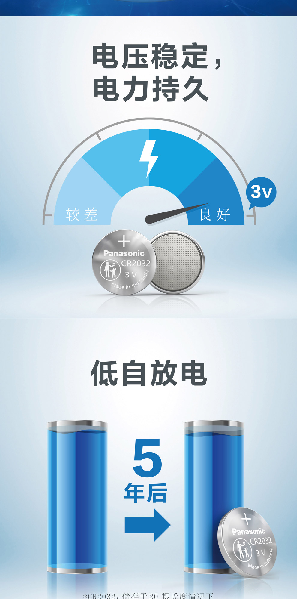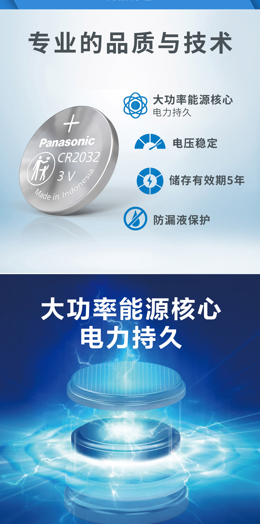 松下CR2032纽扣电池 3V 5粒/卡 单位:卡