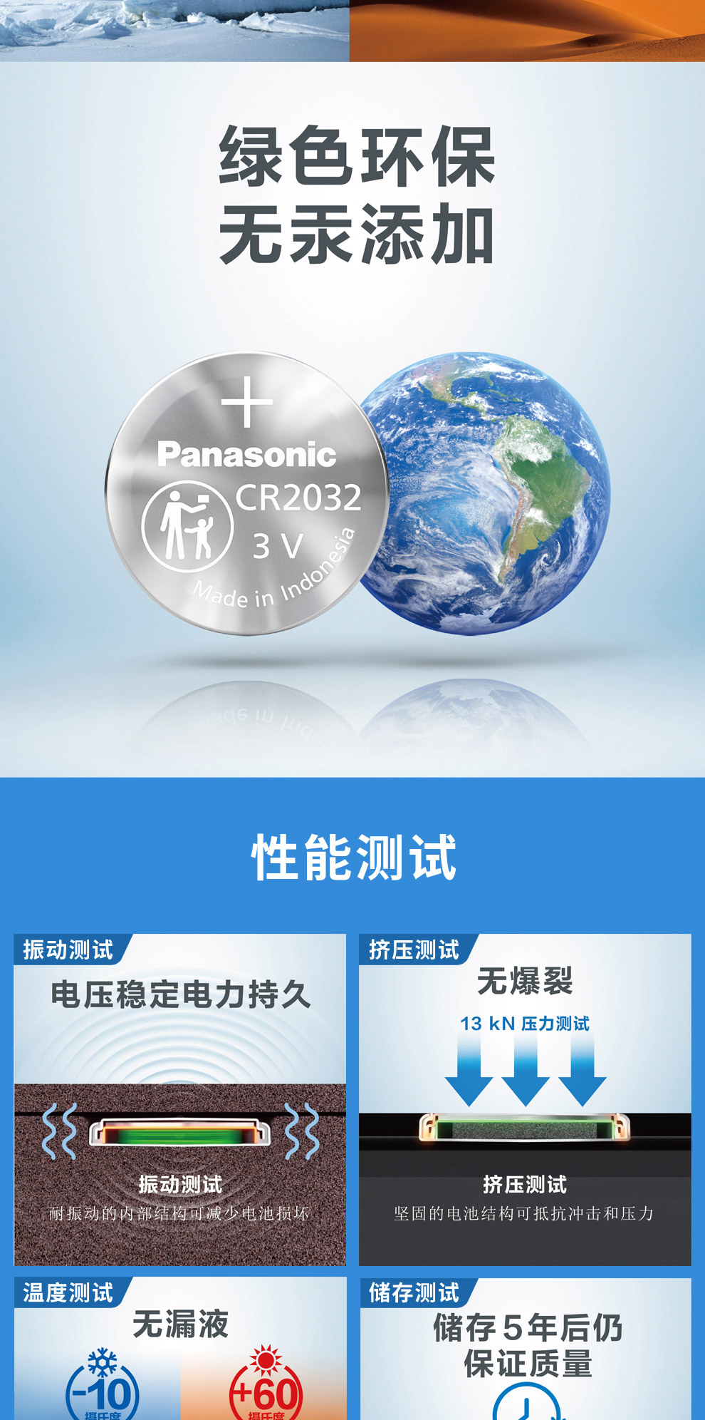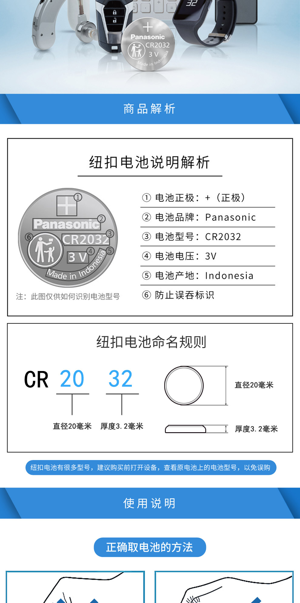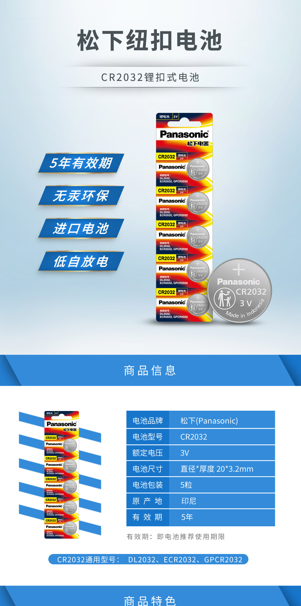 商品名称:松下CR2032纽扣电池 3V 5粒/卡 单位:卡