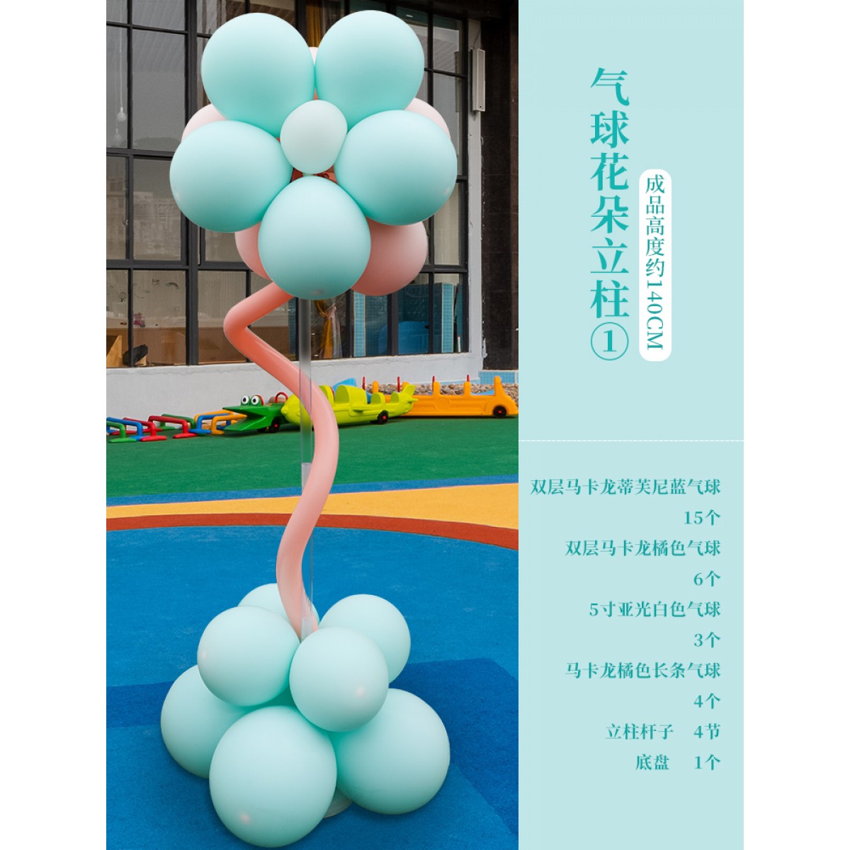 商品名称:六一儿童节马卡龙花瓣气球装饰立柱 气球花立柱1 单位:个