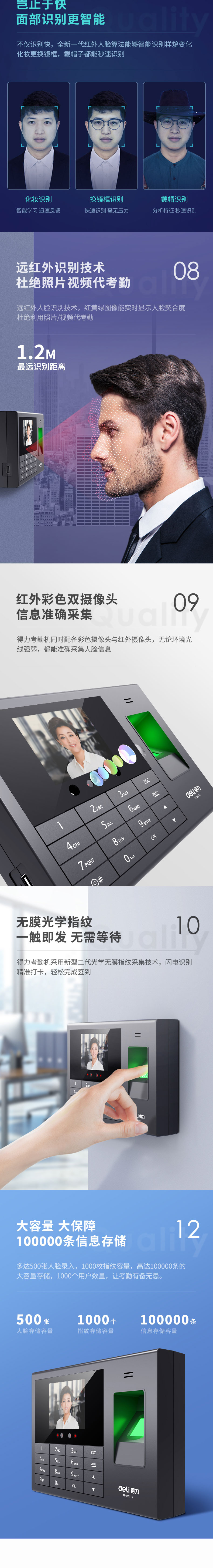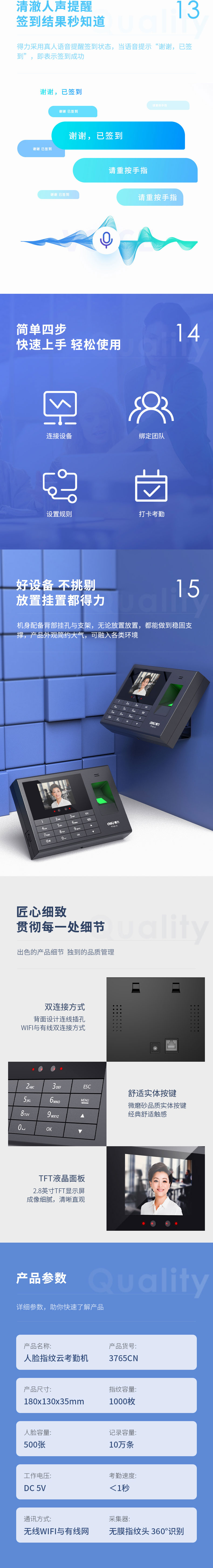 商品名称:得力3765CN智能云考勤机 黑色 单位:台