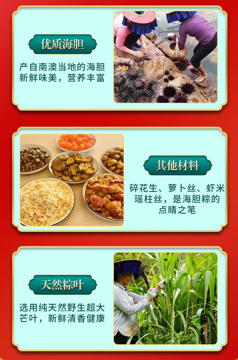 南天阁粽子(海胆粽160g*1,鲍鱼粽160g*1,瑶柱鲜肉粽160g*2,陈皮豆沙粽160g*2,高邮咸蛋60g*4) 深圳印象 1200g/盒 单位:盒