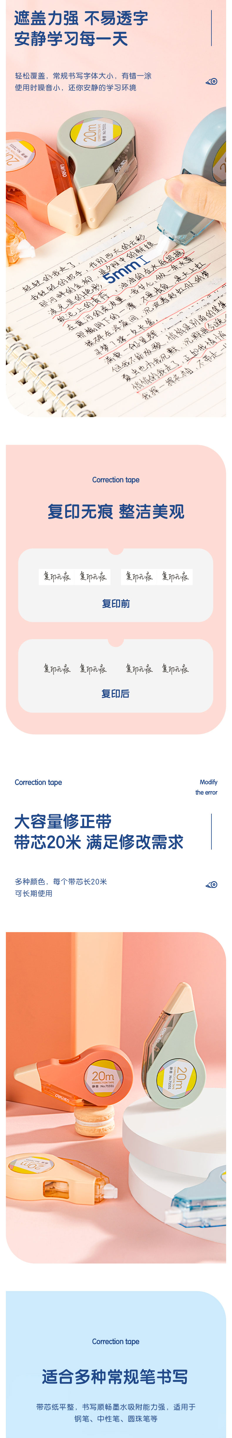 得力71551修正带5mm*20m 颜色随机