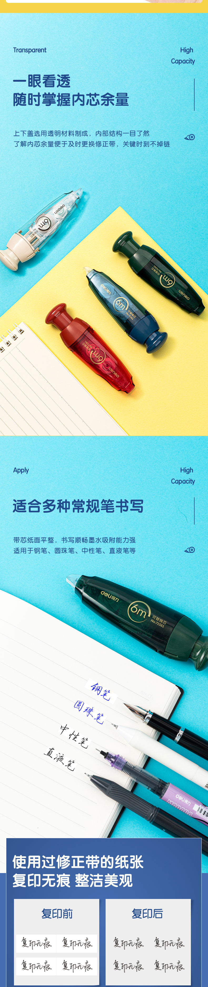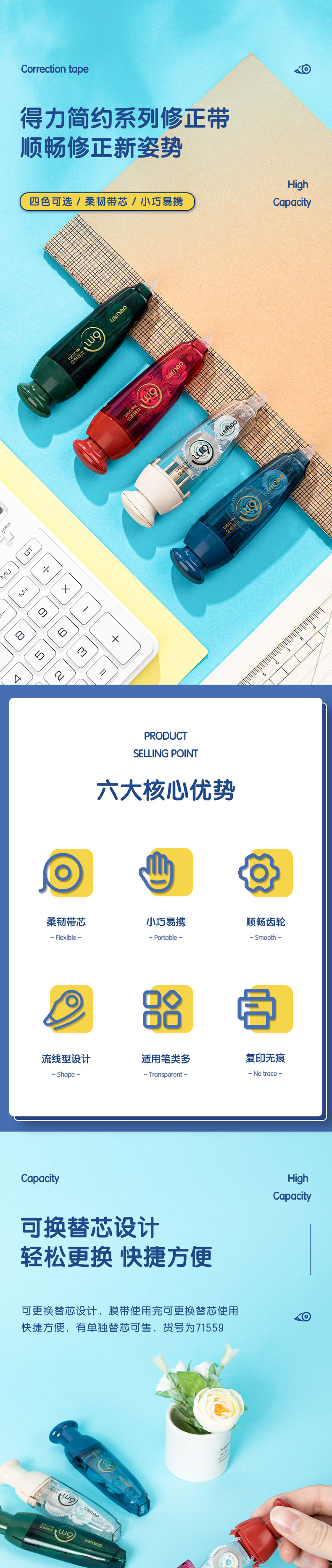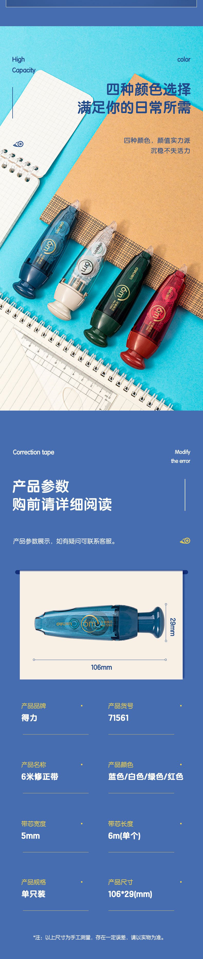 商品名称:得力71561复古风格按动修正带6m 米白 单位:个