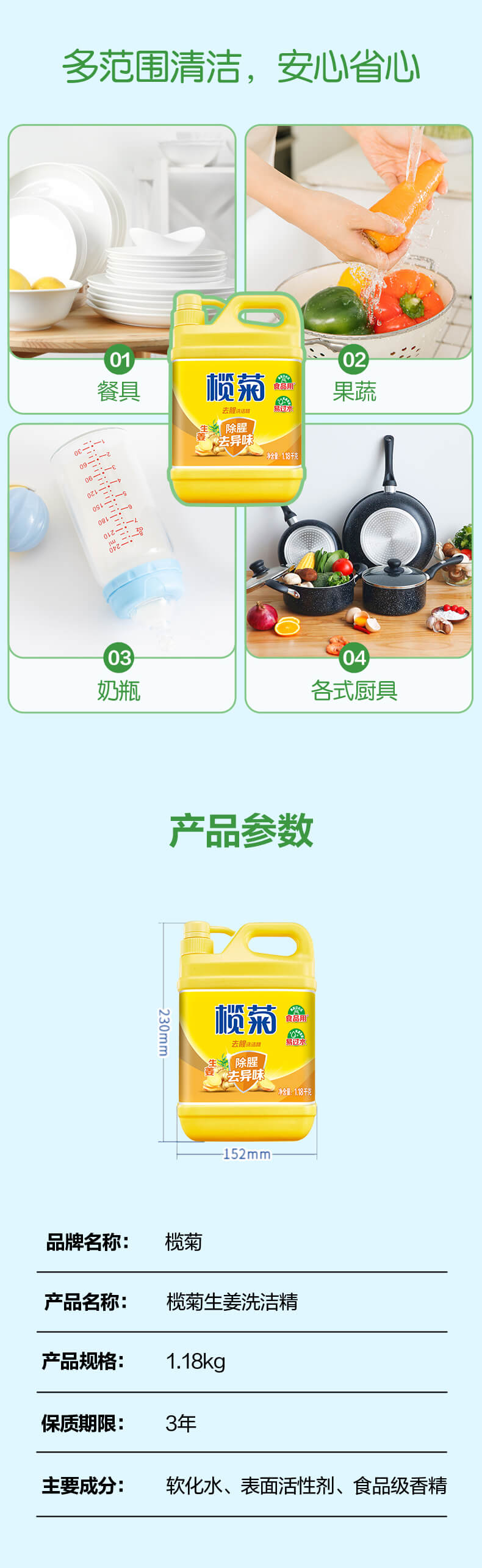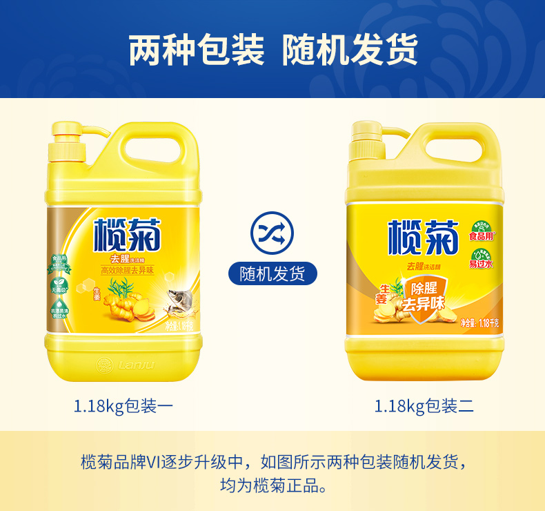 商品名称:榄菊去腥洗洁精 生姜除腥去异味 1.18kg/瓶 单位:瓶