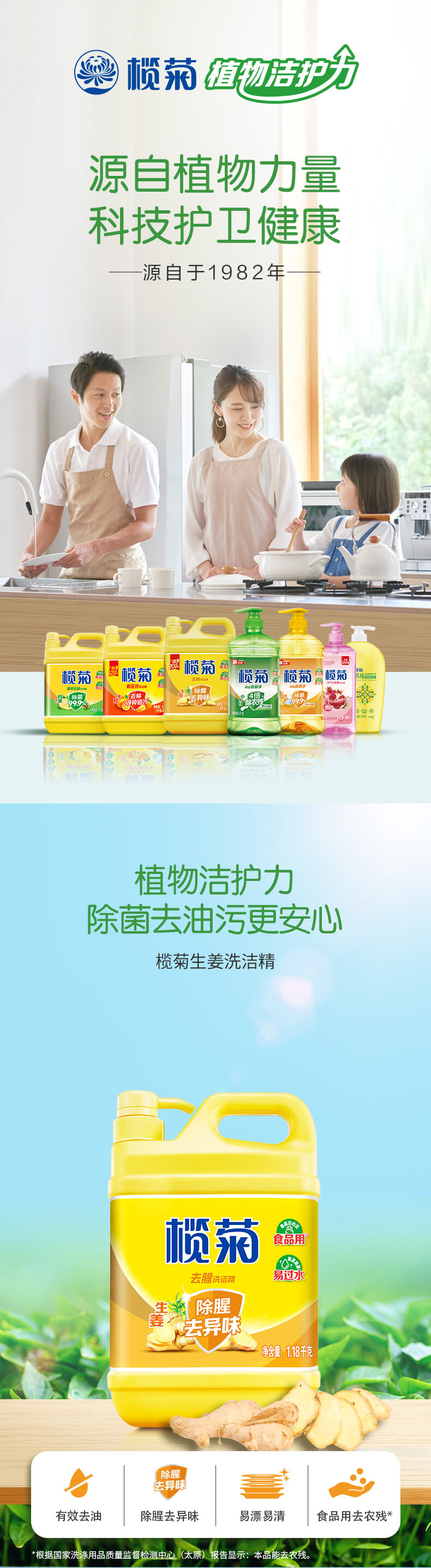 榄菊去腥洗洁精 生姜除腥去异味 1.18kg/瓶 单位:瓶