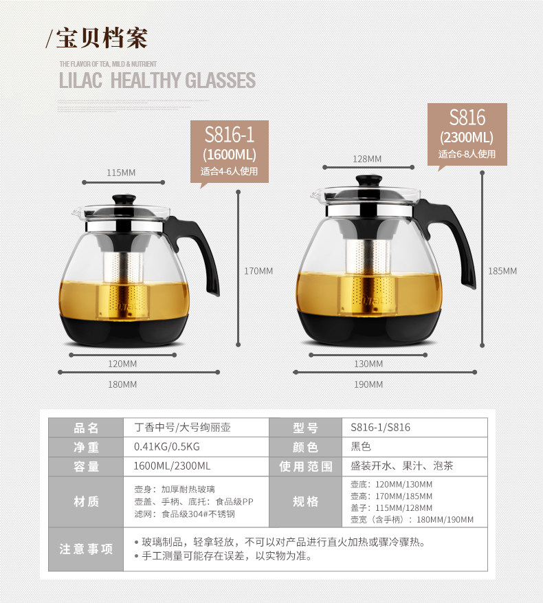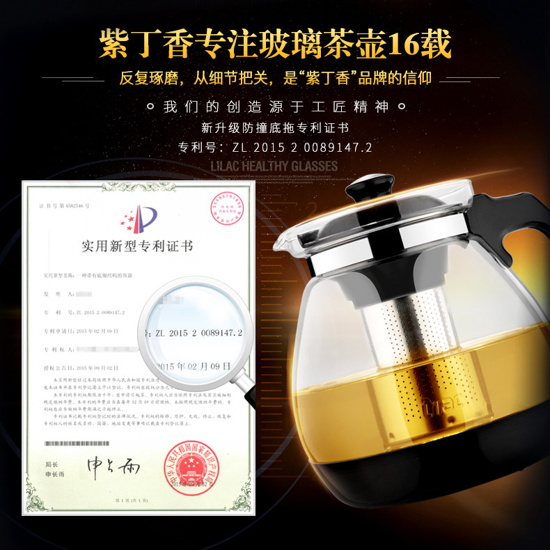 商品名称:紫丁香金熊S816-1玻璃茶壶茶水分离 1600ml 单位:个