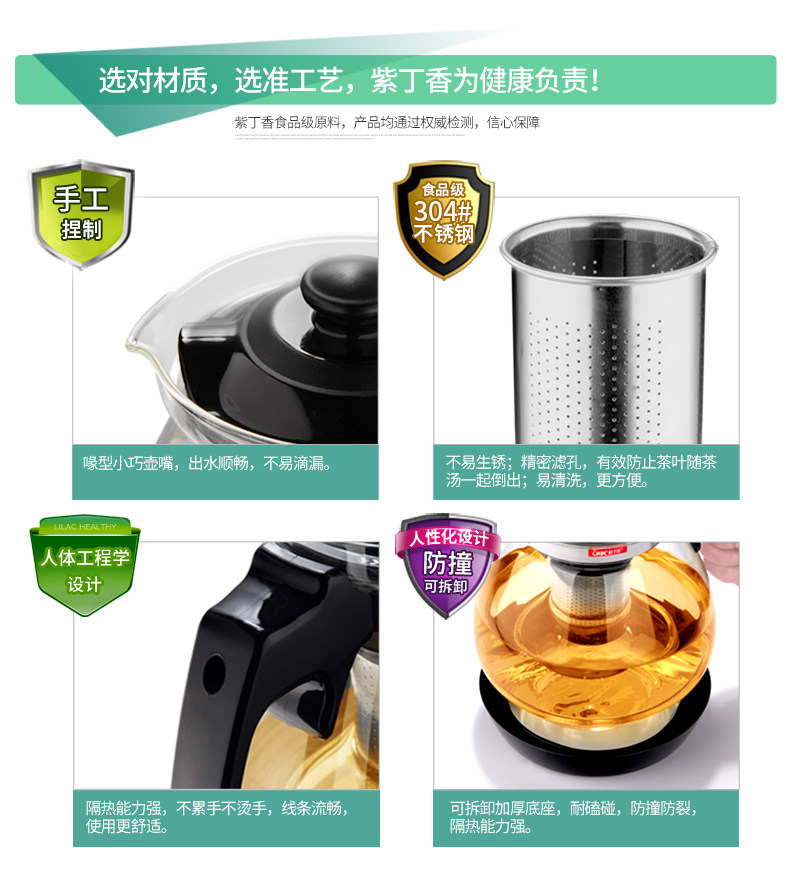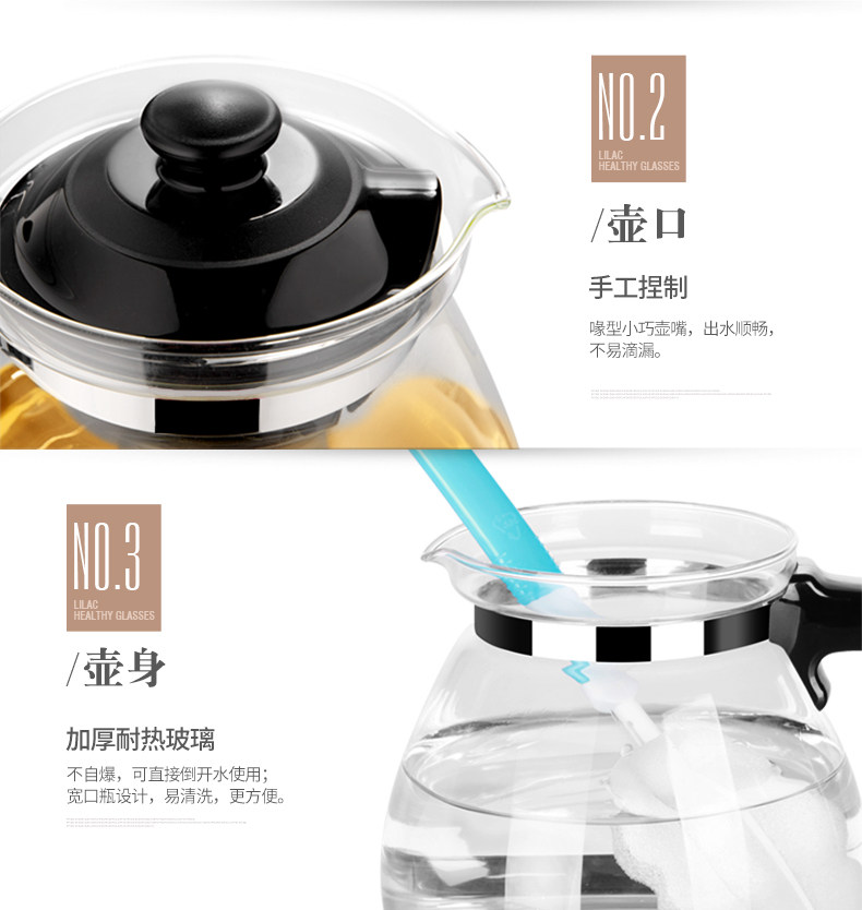 紫丁香金熊S816-1玻璃茶壶茶水分离 1600ml