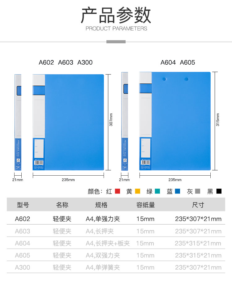 商品名称:齐心A602轻便夹文件夹A4 红色 单位:个