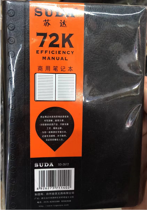 商品名称:苏达SD-2672商用笔记本 72K 单位:本