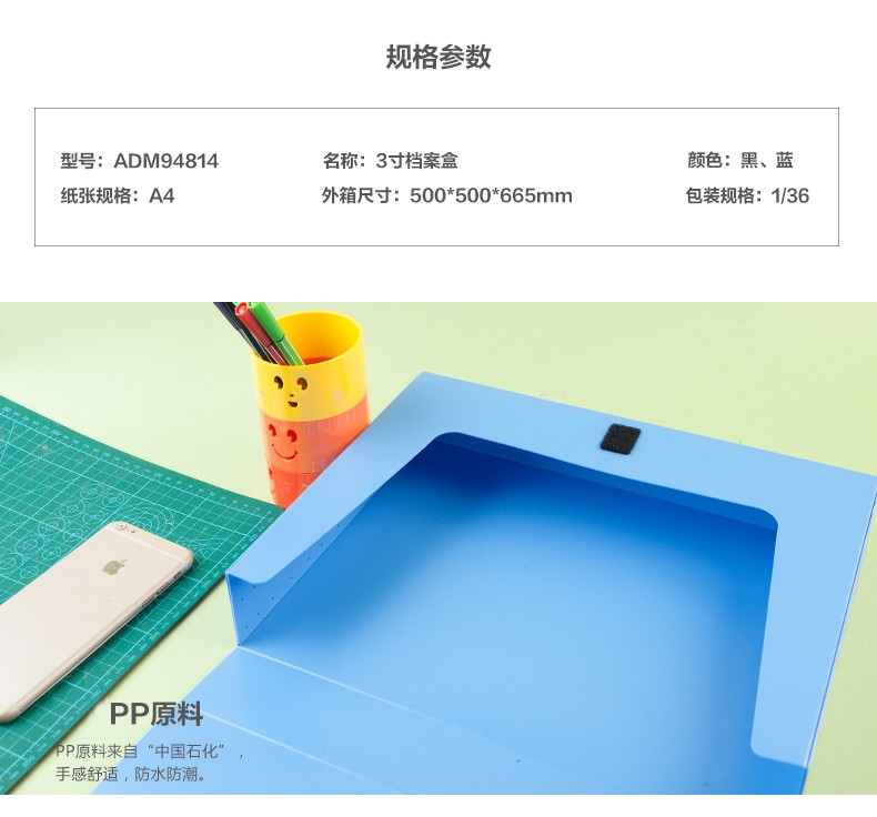 商品名称:晨光ADM94814黑色粘扣档案盒A4 55mm 单位:个