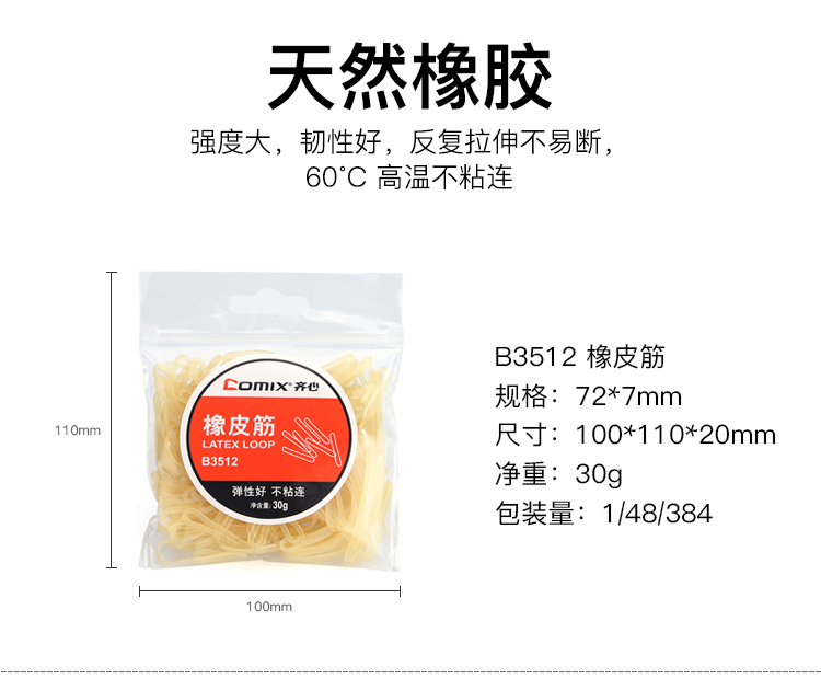 商品名称:齐心B3512橡皮筋 30g/袋 单位:袋