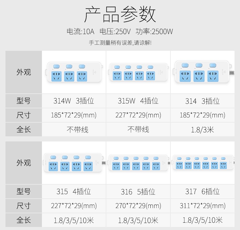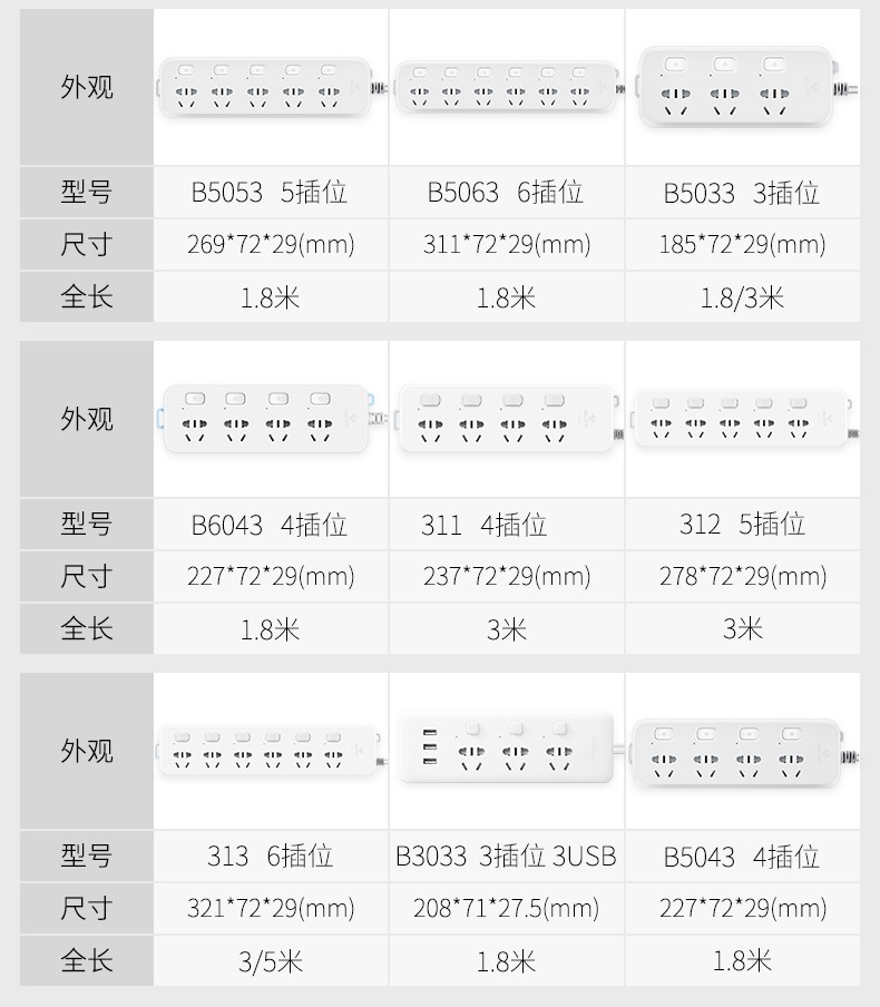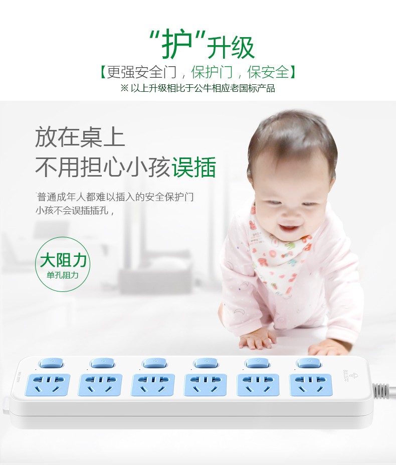 商品名称:公牛GN-313新国标插座6位6分控5m 单位:个