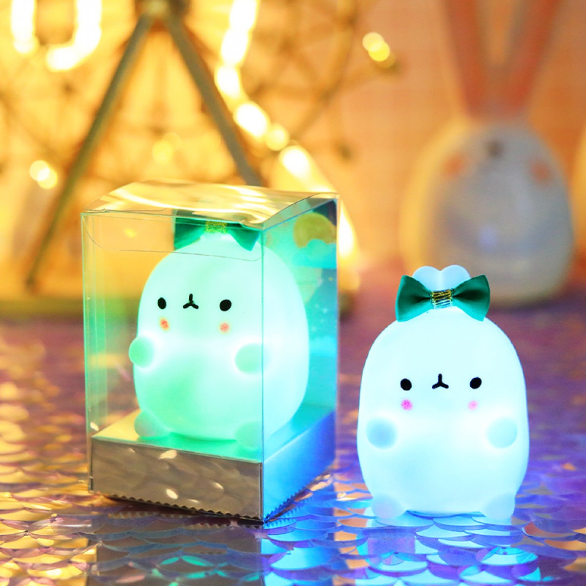 七彩兔子小夜灯 熏紫蝴蝶结白萌兔 单位:个