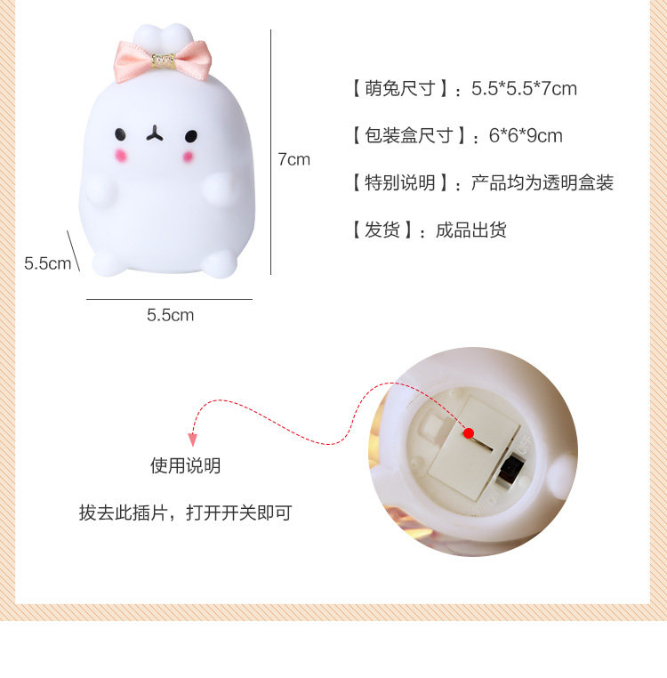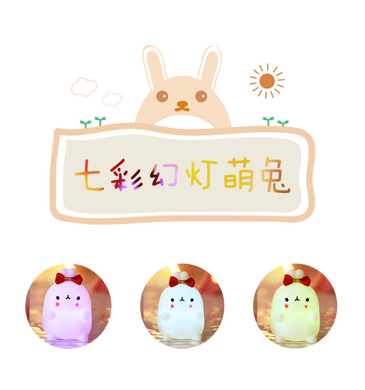 商品名称:七彩兔子小夜灯 黄蝴蝶结黄萌兔 单位:个
