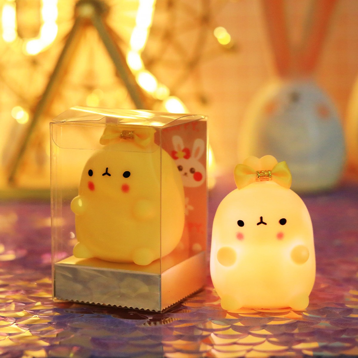 七彩兔子小夜灯 黄蝴蝶结黄萌兔 单位:个