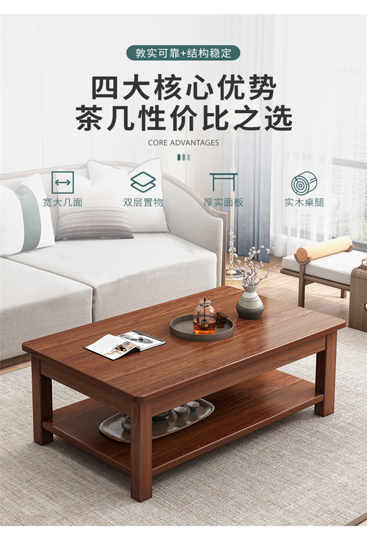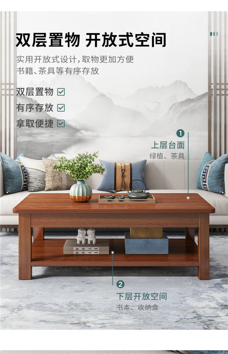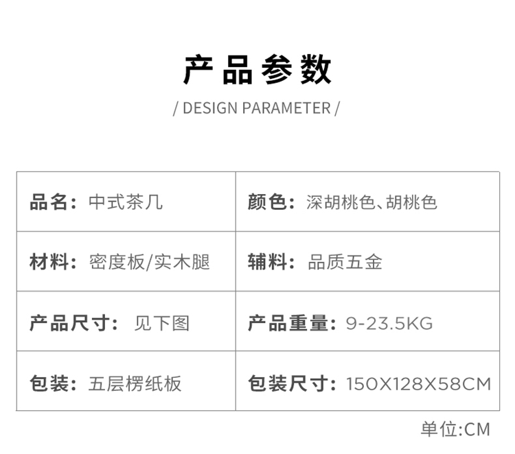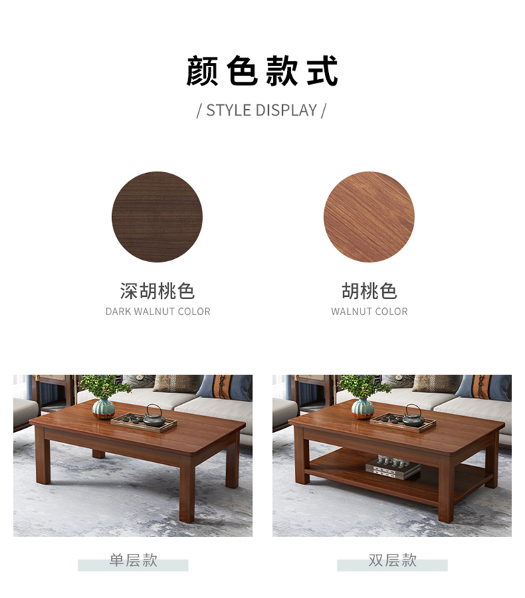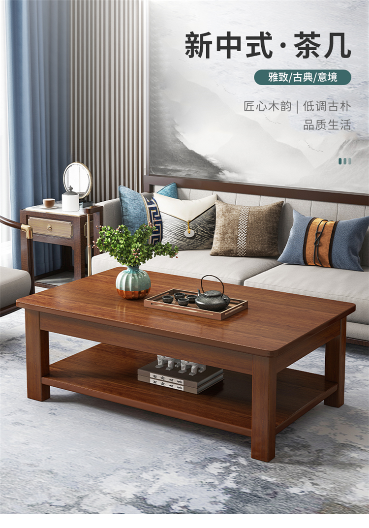 商品名称:中式茶几 双层深胡桃色 100*50*45cm 单位:张