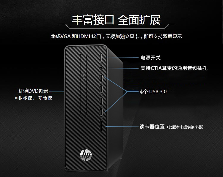 惠普HP 280 Pro G5 SFF台式电脑 i3-10105/4G*2/256G SSD/Win11/USB键盘鼠标/180W/333/网络同传/21.5寸