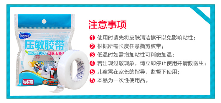 商品名称:海氏海诺压敏胶带 PE透气型 易撕1.25cm*9m/卷 单位:卷