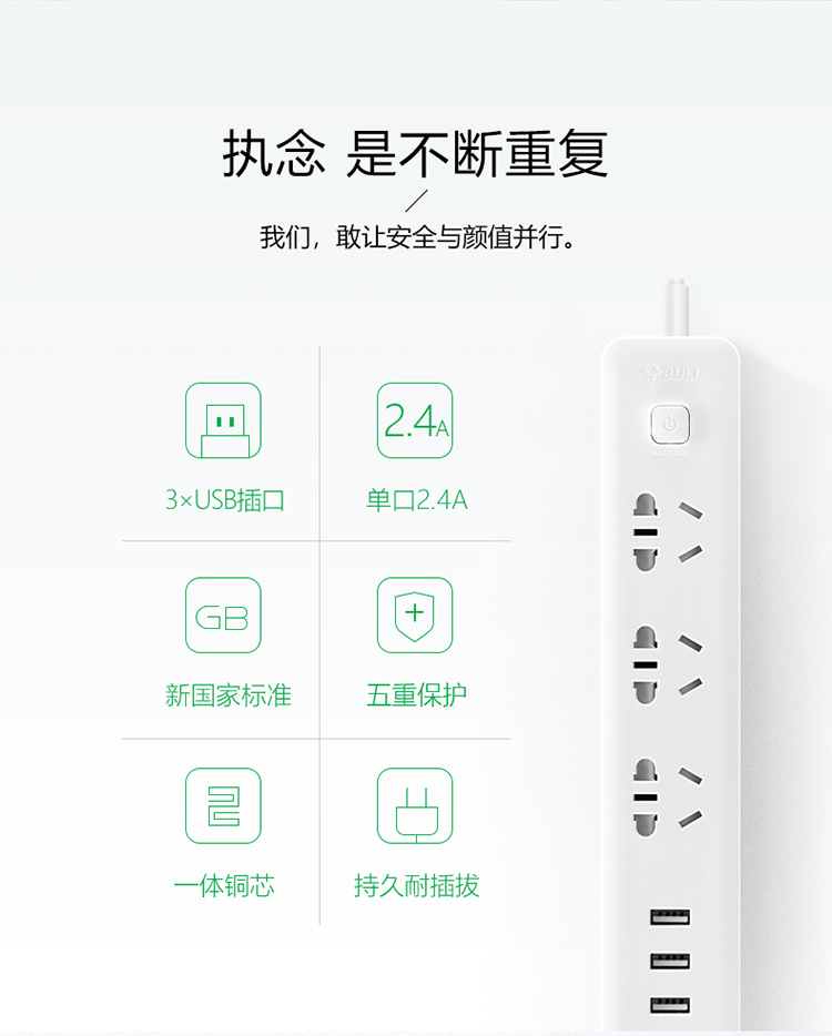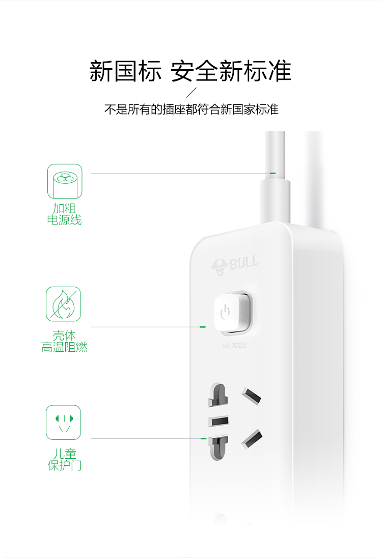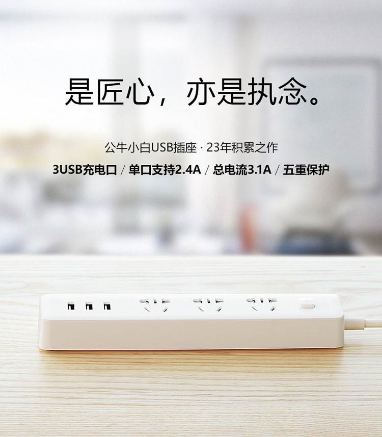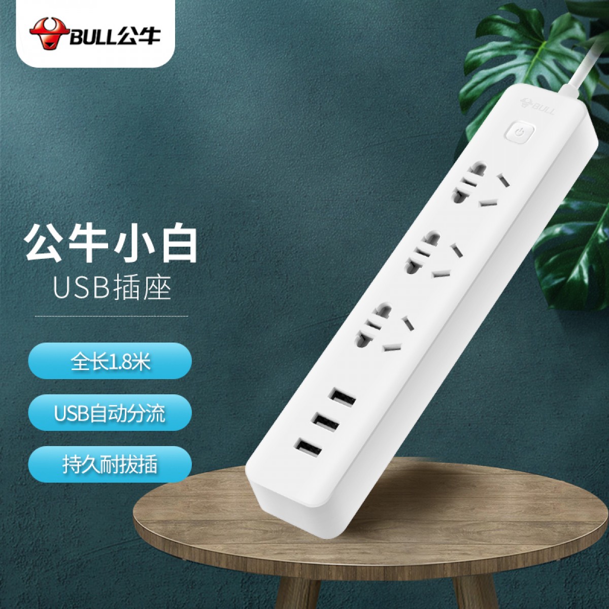 公牛GN-B403U新国标小白USB插座排插 3usb接口+3孔全长1.8米 单位:个