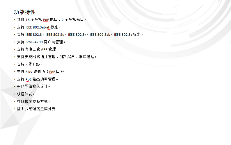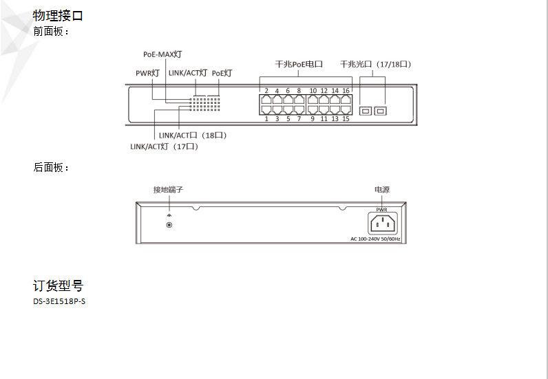 商品名称:海康威视DS-3E1518P-S交换机 16千兆PoE电口+2千兆光口 单位:台
