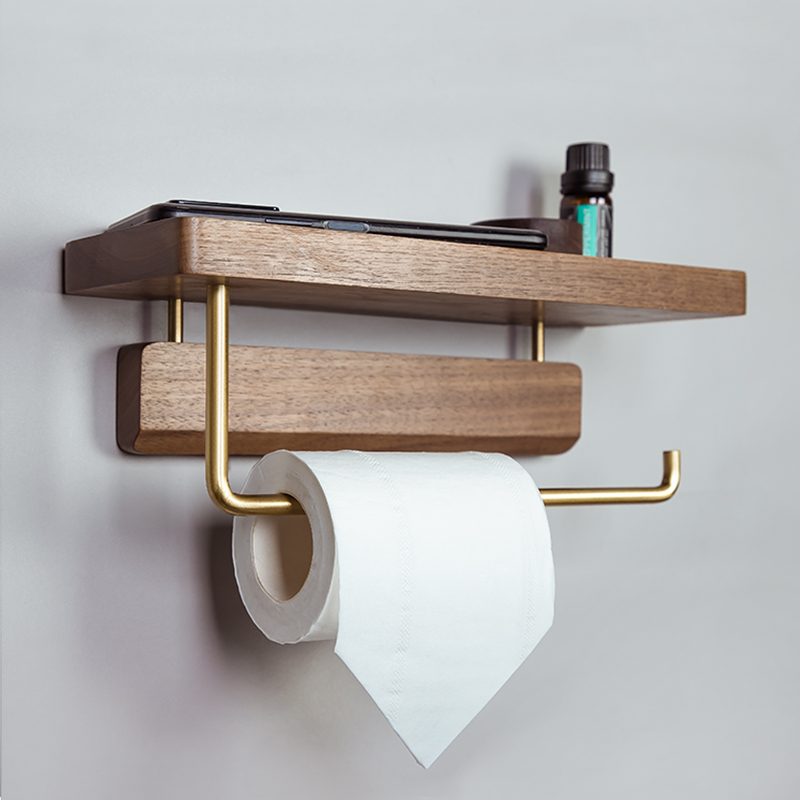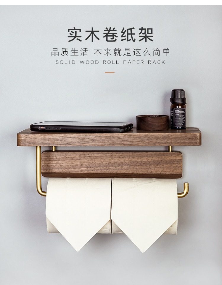 商品名称:森木良品实木卷纸架 拉丝金胡桃木 打孔免钉双用 28*10*10cm 单位:个
