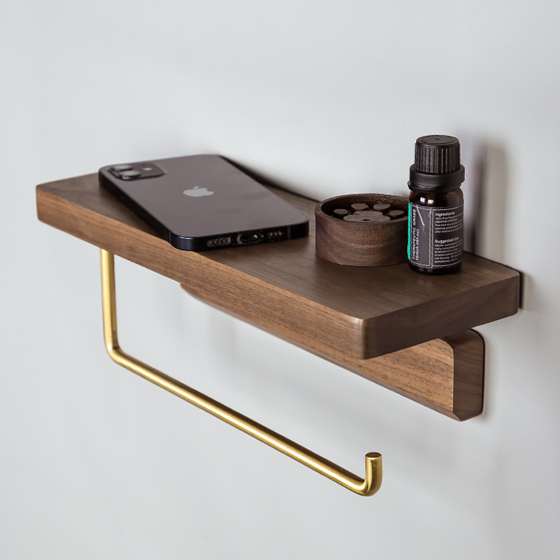 森木良品实木卷纸架 拉丝金胡桃木 打孔免钉双用 28*10*10cm 单位:个