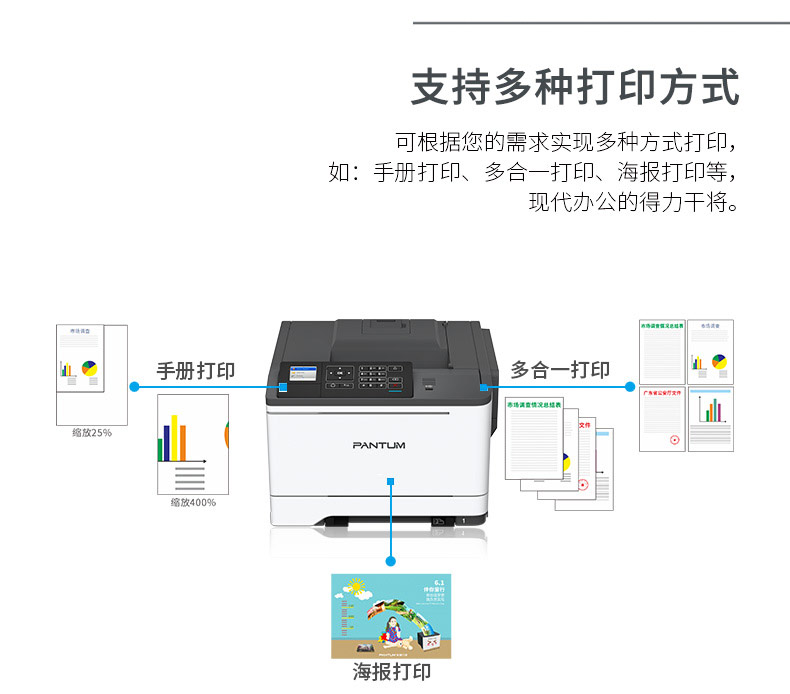 商品名称:奔图CP2506DN plus彩色激光打印机 最大支持幅面A4/自动双面打印/网络打印/USB打印/高品质彩色/加密打印 单位:台