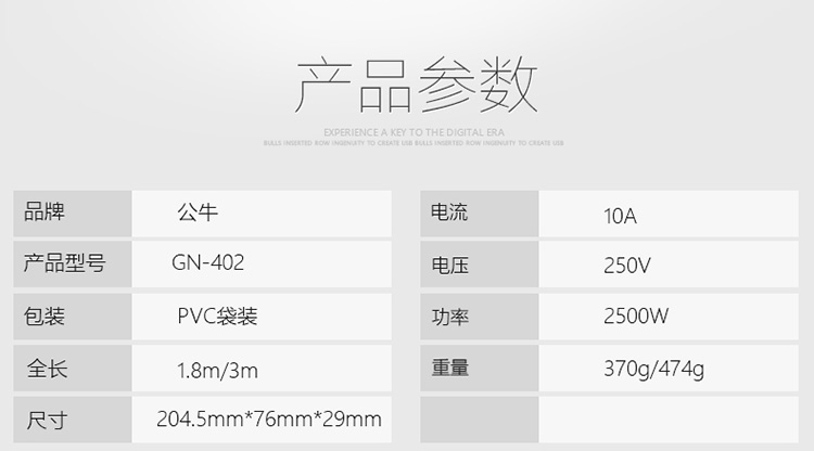 商品名称:公牛GN-109K新国标插座排插 6位总控/全长1.8m 单位:个