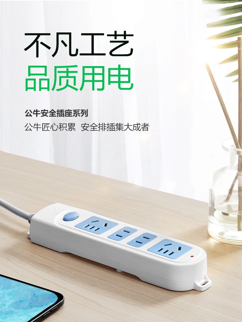 公牛GN-109K新国标插座排插 6位总控/全长1.8m