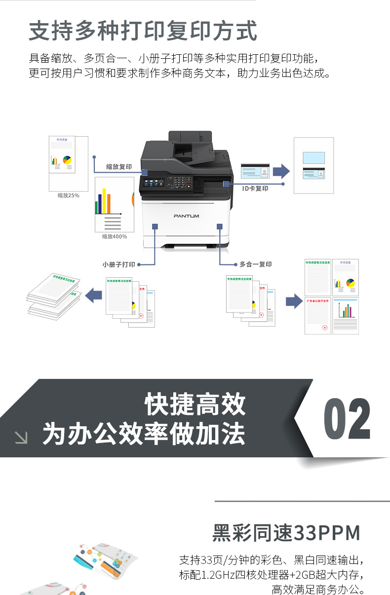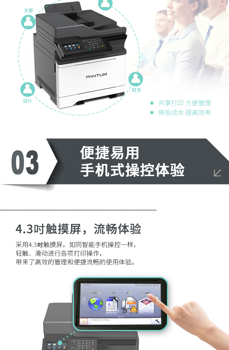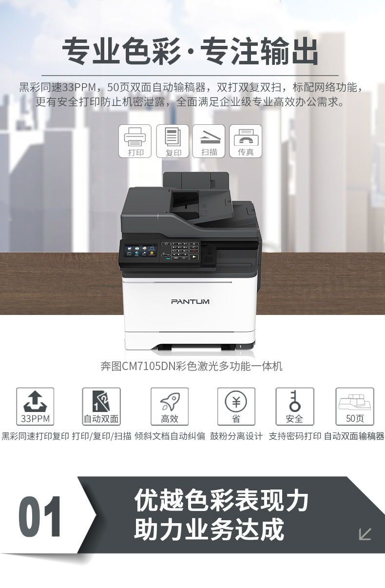 奔图CM7105DN彩色激光一体机 四合一/最大支持幅面A4/自动双面打印/网络打印/USB打印/加密打印