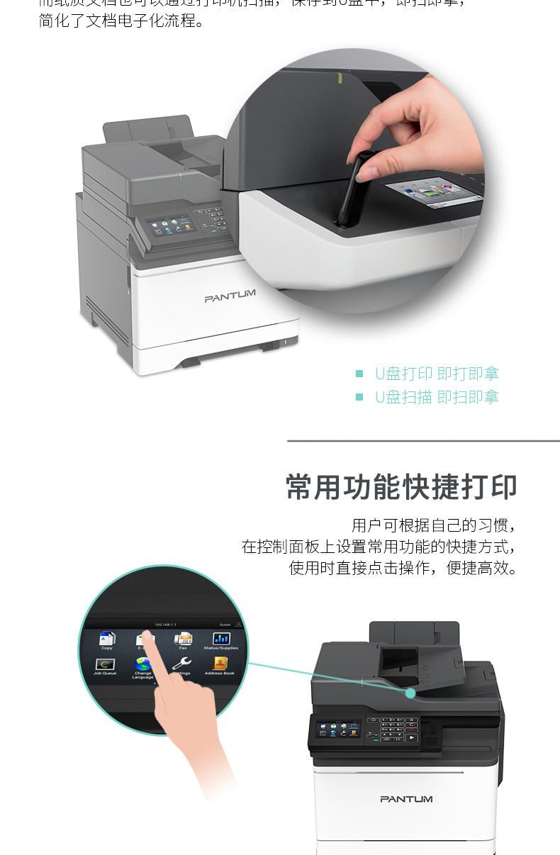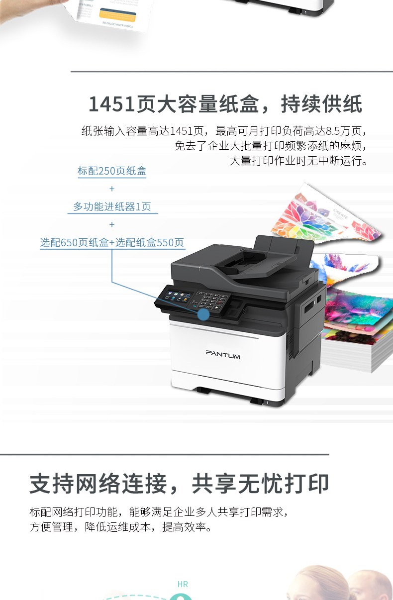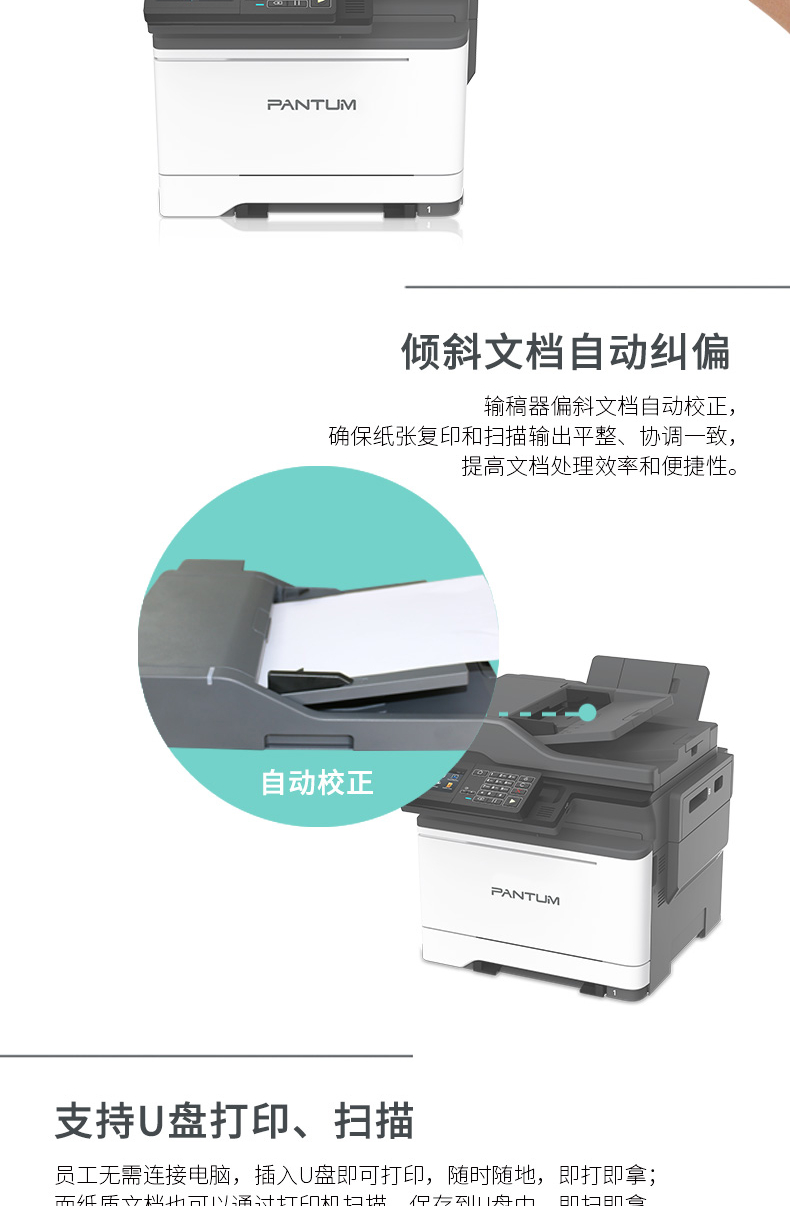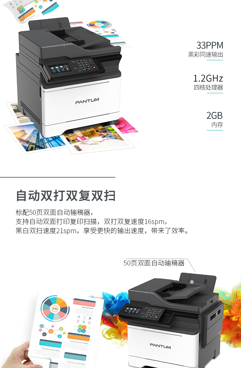 商品名称:奔图CM7105DN彩色激光一体机 四合一/最大支持幅面A4/自动双面打印/网络打印/USB打印/加密打印 单位:台