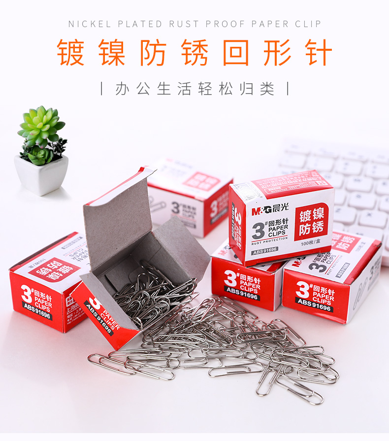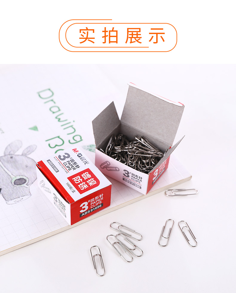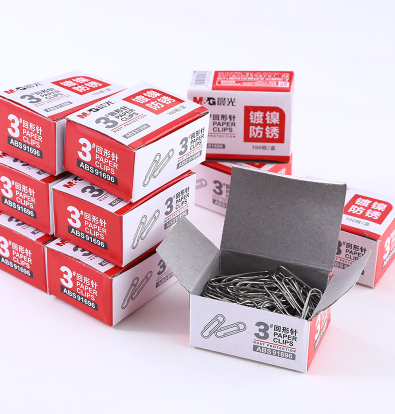商品名称:晨光ABS91696纸盒装回形针3# 28mm 100枚/盒 单位:盒