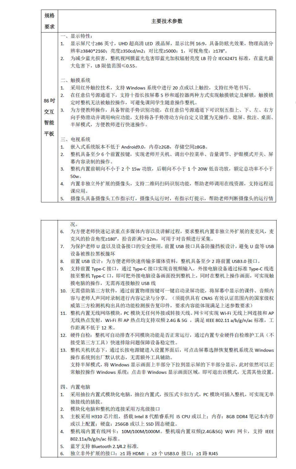 商品名称:希沃FE86EV交互智能平板触控一体机 单位:台