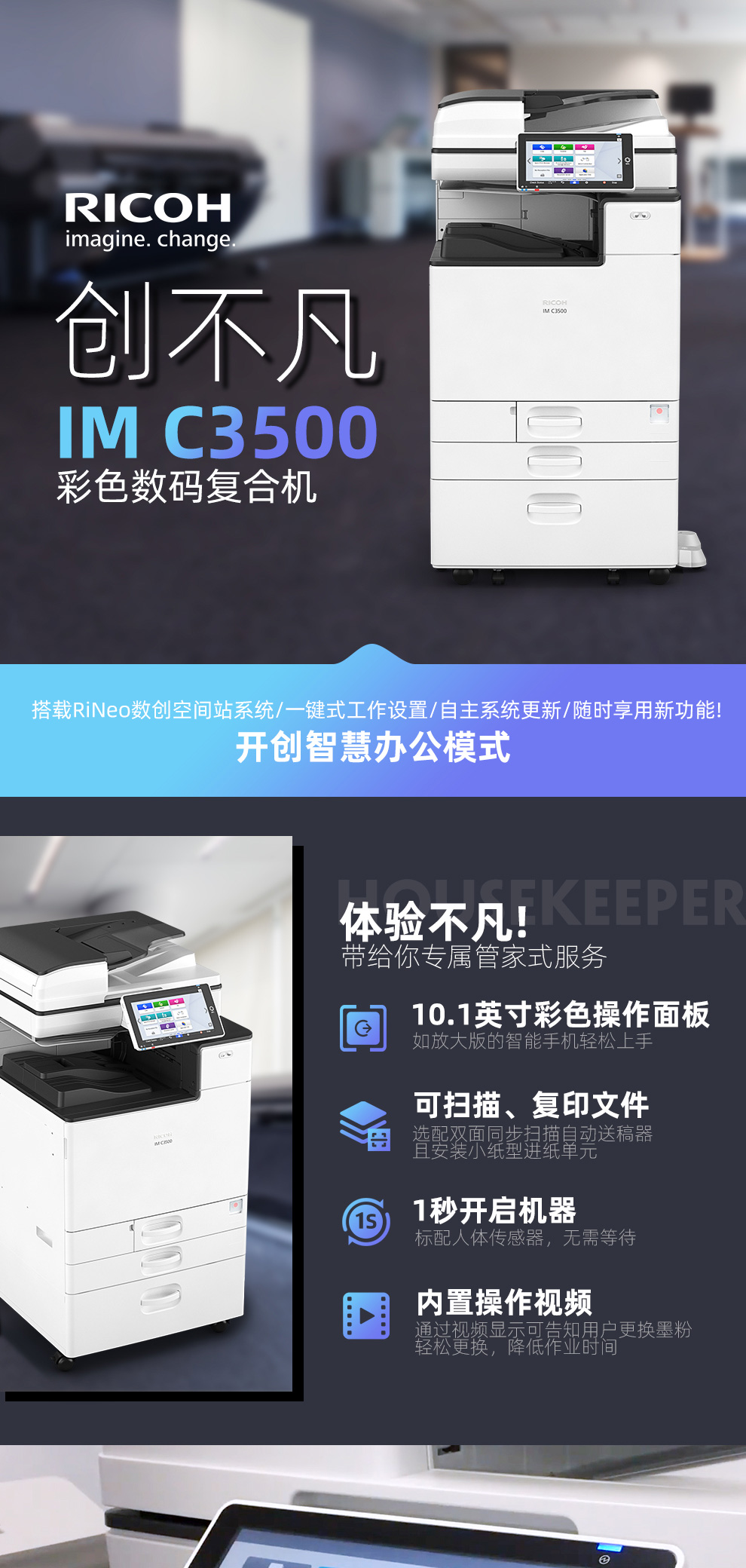 理光IM C3500彩色多功能数码复合机(主机+双面器+自动双面送稿器+网络打印扫描卡+双层供纸盒+复印机底座)单位:台