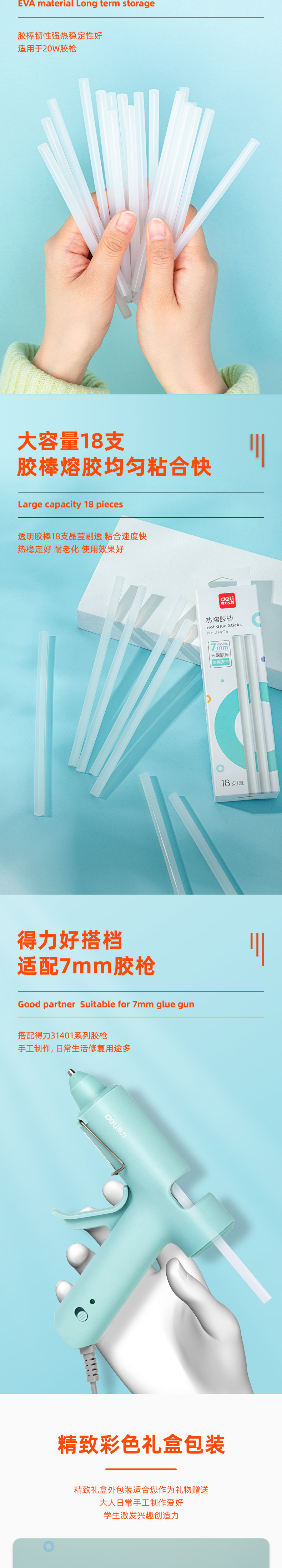 得力31405热熔胶棒φ7mm 白色 18支/盒 单位:盒