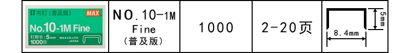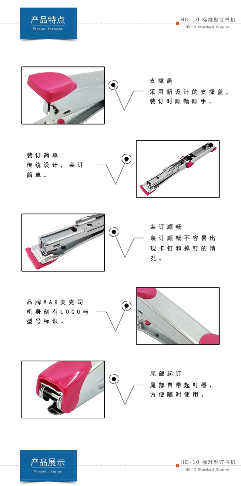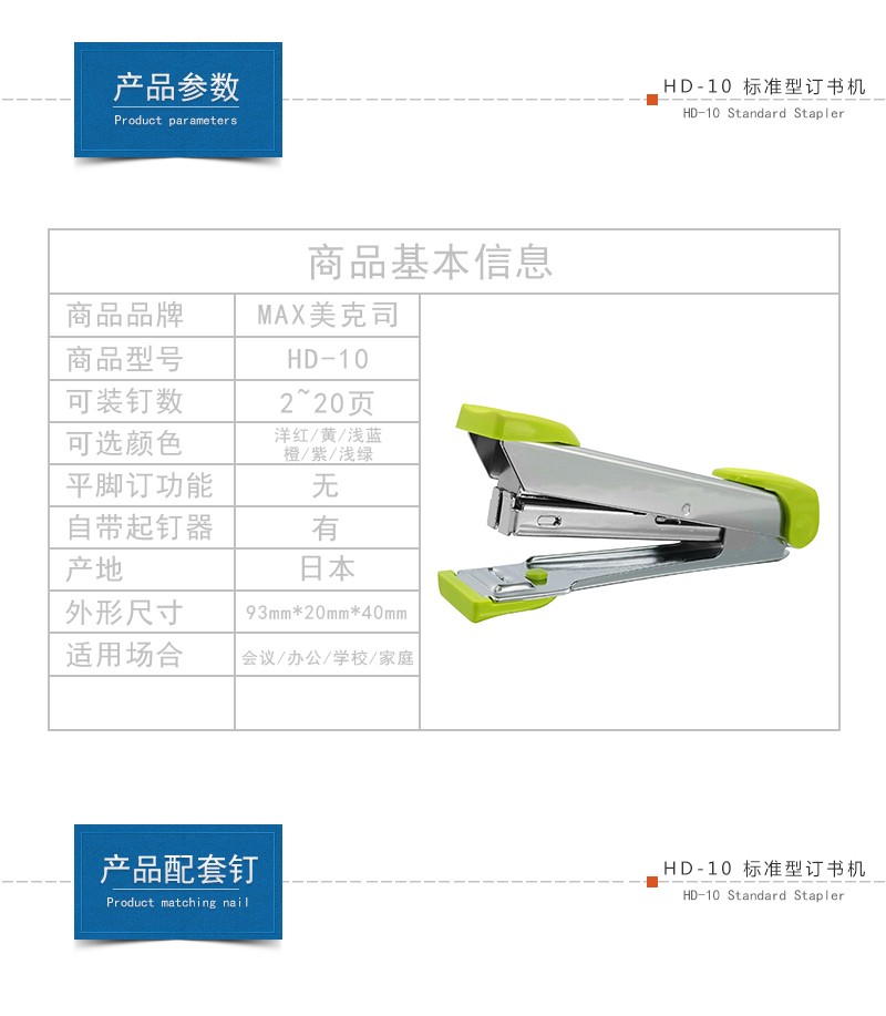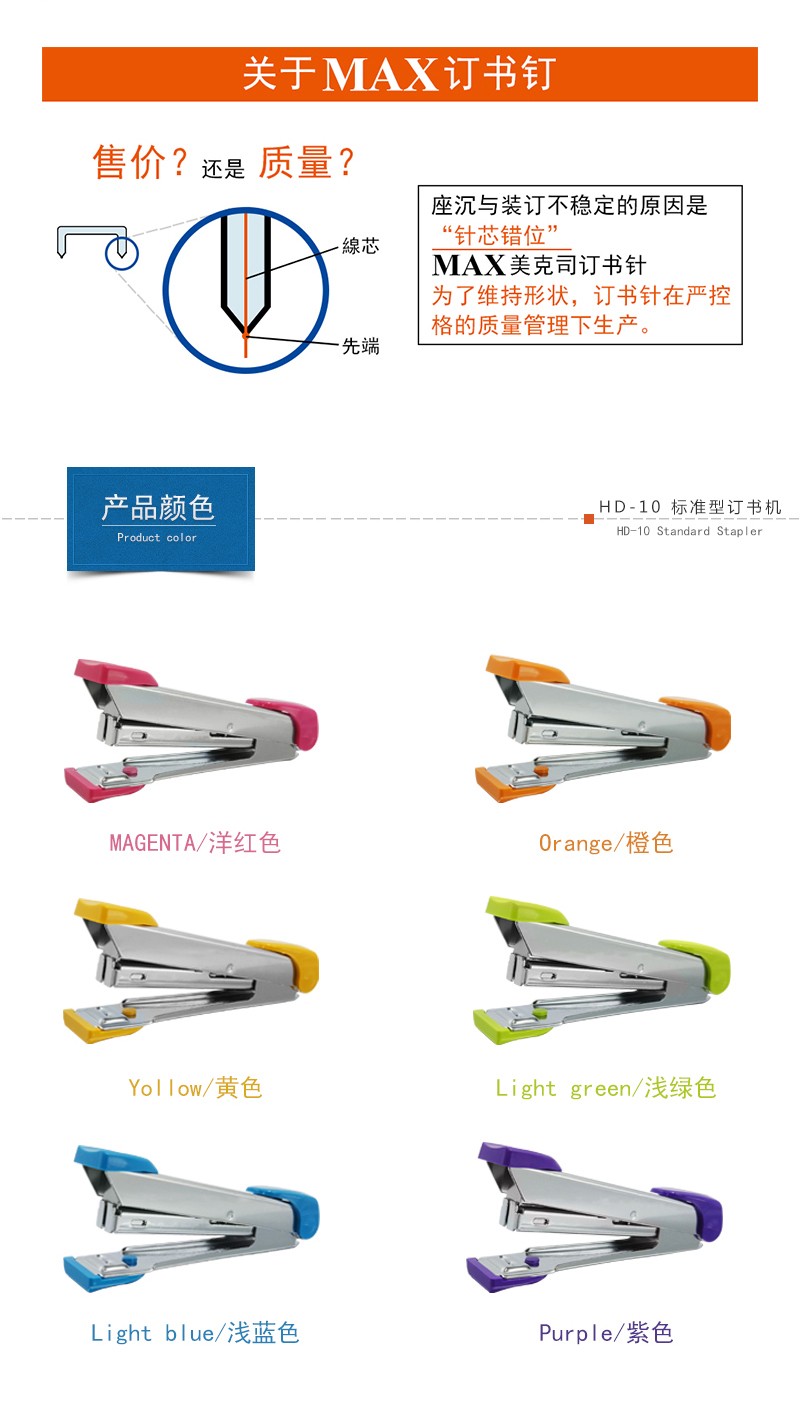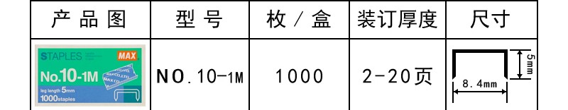 商品名称:美克司HD-10订书机 10号 颜色随机 单位:个