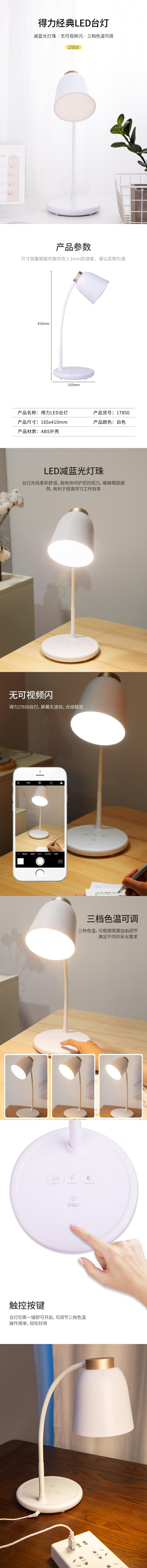 商品名称:得力17850 LED台灯 白色 单位:盏